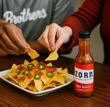 ZORN has a heat that sneaks up on you, but doesn't stay long. If your taste doesn't do hot at all, you'll think it's very hot. However, if you're a hot sauce lover, it may seem more like a lower, medium heat.